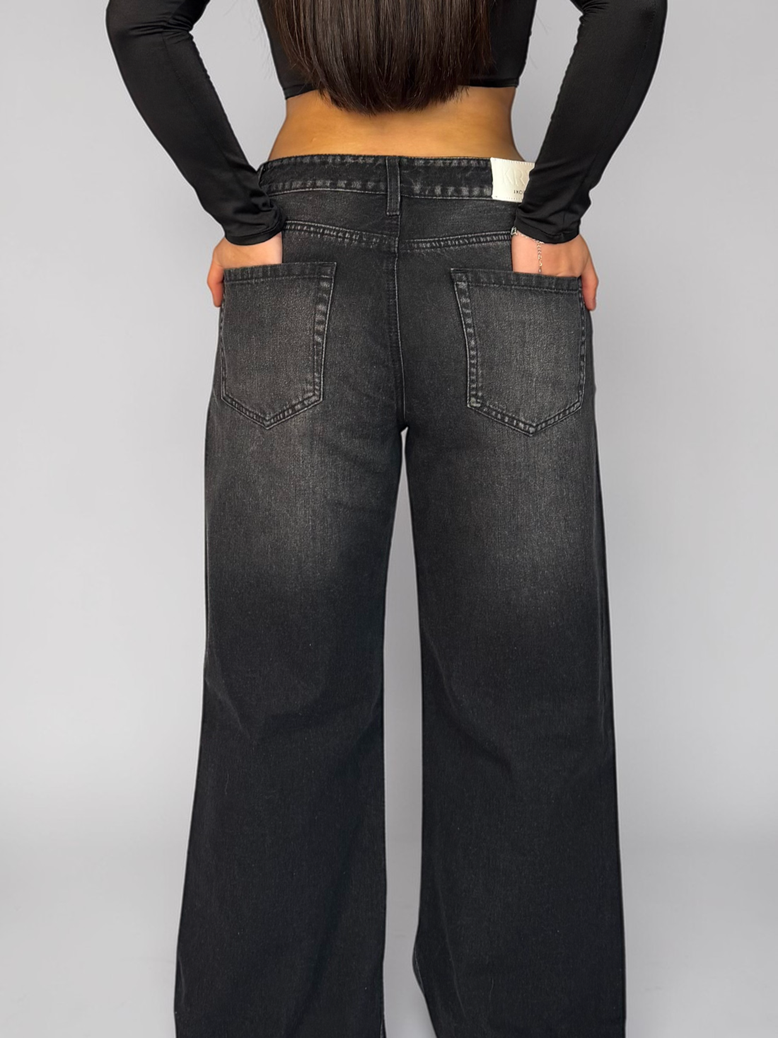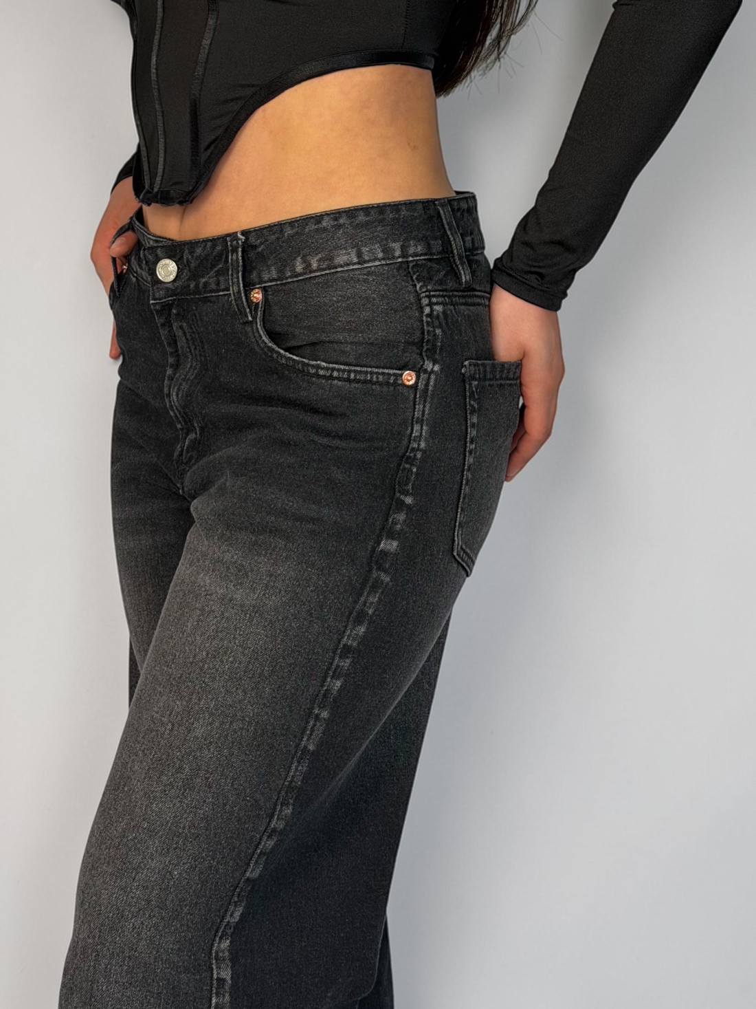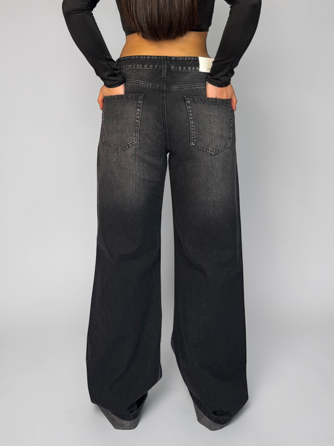 Wide Leg Tiro Bajo Negro Mujer
